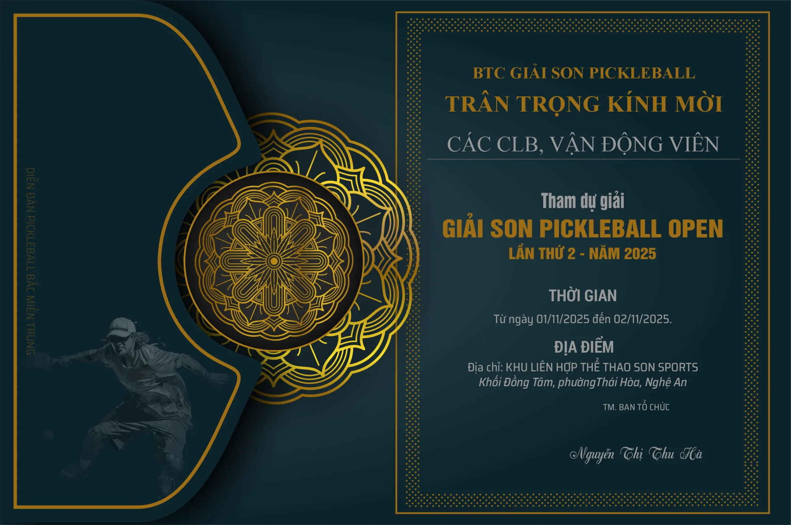 Cộng đồng Pickleball Nghệ An sẽ chính thức bước vào tháng 11/2025 bằng giải đấu SON Pickleball lần thứ 2 – Năm 2025, diễn ra trong hai ngày 01 – 02/11/2025 tại Khu liên hợp thể thao SON Sports, Thái Hòa. Đây không chỉ là một giải Pickleball đơn thuần, mà còn là lời chào mừng đầy khí thế kỷ niệm 43 năm Ngày Nhà giáo Việt Nam (20/11/1982 – 20/11/2025).
